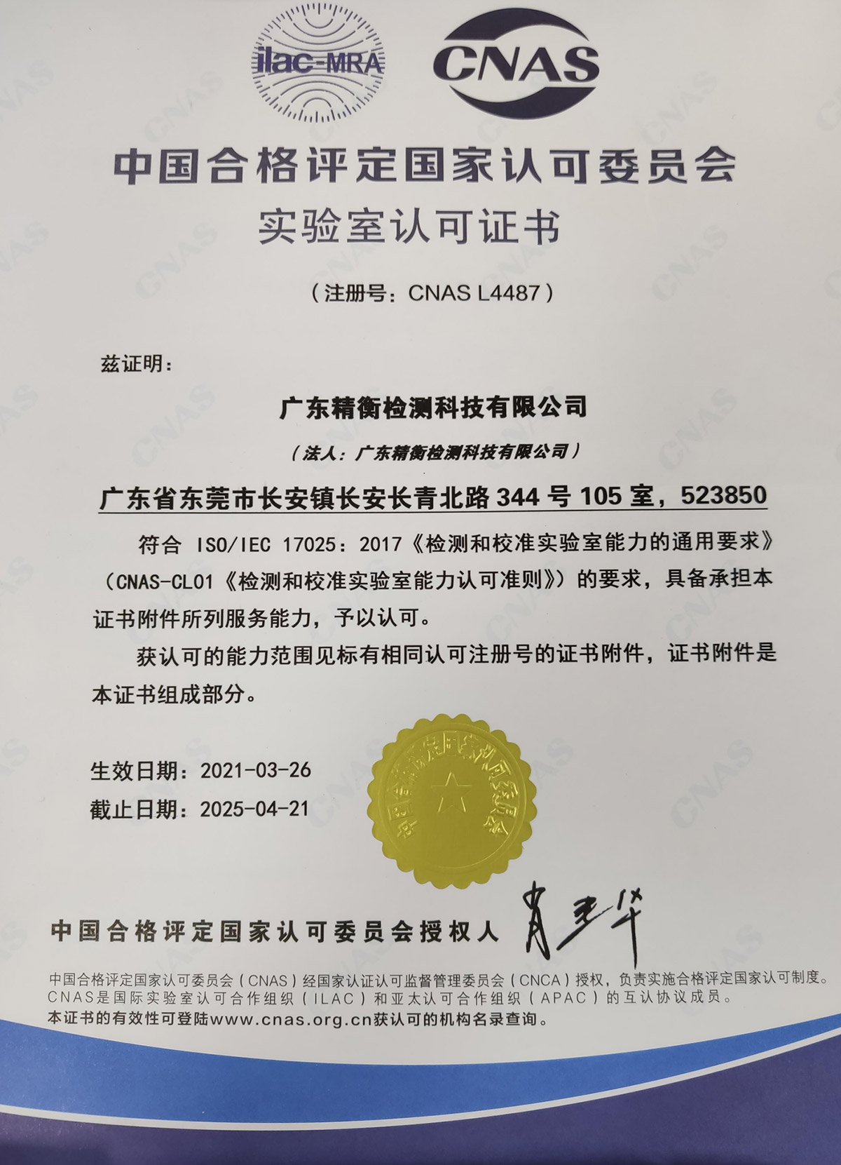 廣東精衡檢測科技有限公司(簡稱:精衡檢測),于2008年11月成立,并通過中國合格評定國家認可委員會(簡稱:CNAS)的認可,認可證書號:L4487。精衡檢測是一家從事儀器計量檢測、銷售、維修等技術服務為一體的全國化、綜合性的第三方計量檢測機構,具有獨立法人資格。2012年通過當地質量技術監(jiān)督局的考核,建立了多項最高計量標準,迄今已通過幾十項最高計量考核標準。實驗室位于廣東省東莞市長安鎮(zhèn),占地面積3000平方米,本實驗室目前已擁有電磁、無線電、幾何量、熱學、力學等多個領域的計量專業(yè)技術,出具的證書具有權威性、可靠性、公正性。精衡檢測以“為客戶提供專業(yè)、精準、經濟、快速的服務”為宗旨,開展相應專業(yè)儀器的校準、檢測、銷售、維修及人員培訓工作。公司秉承其科學、公正、準確、高效的質量方針。信守“科學公正、客戶至上”的承諾,利用先進的計量標準儀器設備和精湛的測試技術,竭誠為每一位客戶提供高質量的服務。